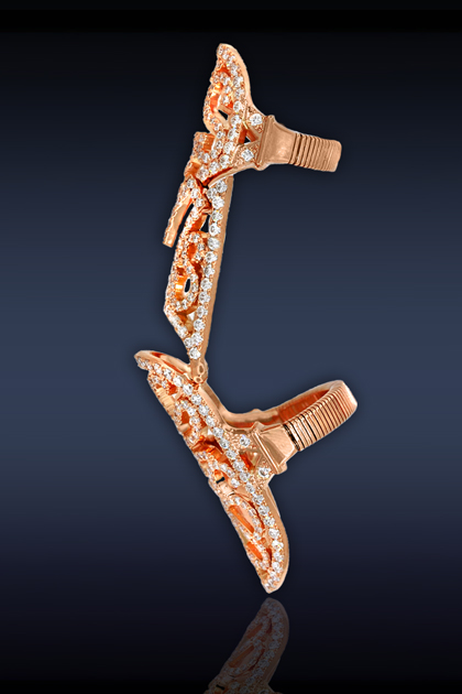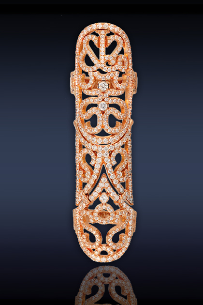 Antique collection full finger ring. Features: 18k rose gold set with 4.50 carats of diamonds. Photo courtesy of Jacob & Co. jacobandco.com/~