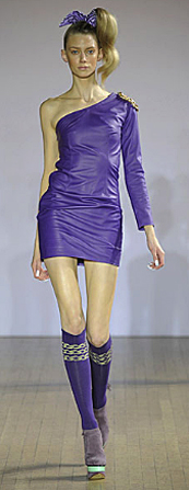 The bodycon logo miniskirts with tucked-in baggy tees and over the knee socks were very wearable for young London and the colorful printed tights would be welcome in an otherwise dark palette that is normal for Autumn/Winter.