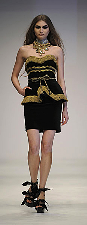 PPQ's luxe-pop chic brand identity inspired an entirely black and gold collection with an array of looks perfect for a night out in London town. A black velvet bandeau dress with gold trimmings and tassels, a black tuxedo playsuit or a black maxi dress with cut-out shoulders and keyhole neckline showing exactly the right amount of flesh had me in dilemmas as to which was my ideal going out party piece.