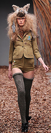 It was all about the countryside at Unique, with the models almost resembling animals themselves with big bushy hair, wild brows and animal masks. There was everything you would need to look stylish in the great outdoors - a distressed parka, oversized knitwear, a herringbone jacket, faux fur mittens and cable knit thigh high socks.