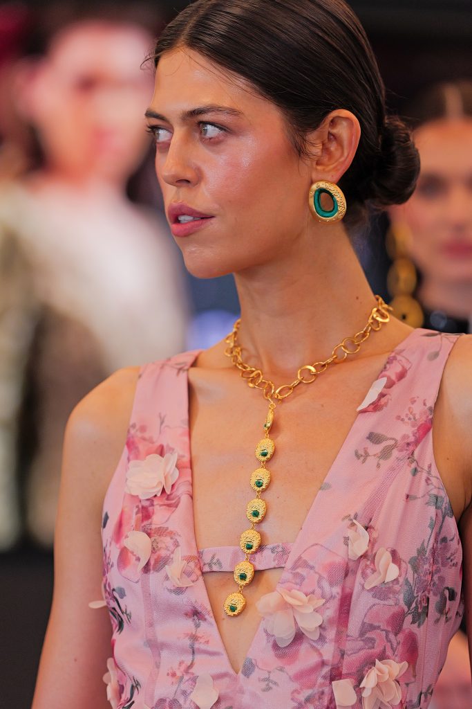 Accessories played a crucial role in defining the mood. Johanna De la Cruz‘s bold, sculptural jewelry gave weight and regality to the looks, while Antoine Atelier handbags-handmade by genuine Colombian artisans– and Lonza footwear kept the styling modern and luxe.