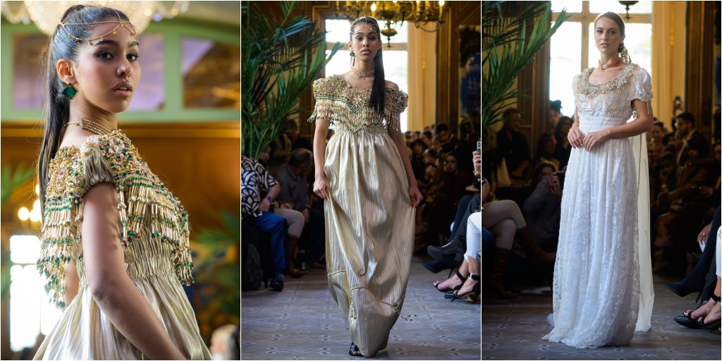 The opening show brought together an international lineup of rising runway stars and industry powerhouses. Among the standout models gracing the catwalk were Olivia Gear who is the reigning Miss Dublin West @oliviagearr, Kristine Subrovska – Ireland’s Next Top Model, @kristinediana_, Holly Alpha @holly.alpha, Alice Croccia @croccia.alice, Imane Sassi @imani.sassi, Macarena Faúndez @macaafaundez and many more. Together, they debuted breathtaking creations from acclaimed fashion houses Amel Oukili @oukili_creation, Mehri Bridal @mehri.bridal101, Negafa fils d’or @negafa_fils_dor, Asma Ahjam Titrit @titrit_event_luxury, Tamara Couture @tamara.couture_ and Enoka Fonseka @enokafonseka_fashion_designer highlighting the artistry, innovation, and cultural storytelling that define Paris Fashion Week.