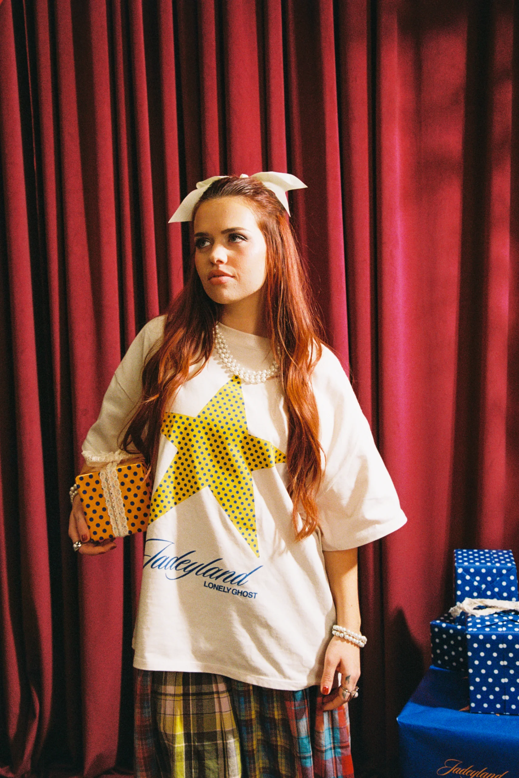 Jade, widely recognized online as Jadey Bird, is a rising creative voice whose authenticity, humor, and effortless style have made her one of today’s standout digital personalities. With a growing community who look to her for confidence, vulnerability, and originality, Jade has become a cultural touchpoint for her generation. Jadeland X LONELY GHOST makes her first-ever brand collection.