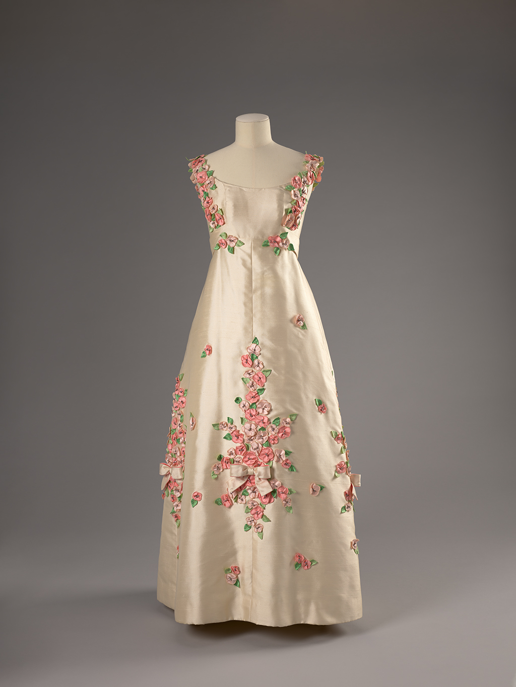 Ann Lowe (American, 1898-1981), Debutante Gown, 1965. Silk shantung with appliquéd silk flowers and rhinestones. Denver Art Museum: Gift of Philae Dominick, 2023.695.