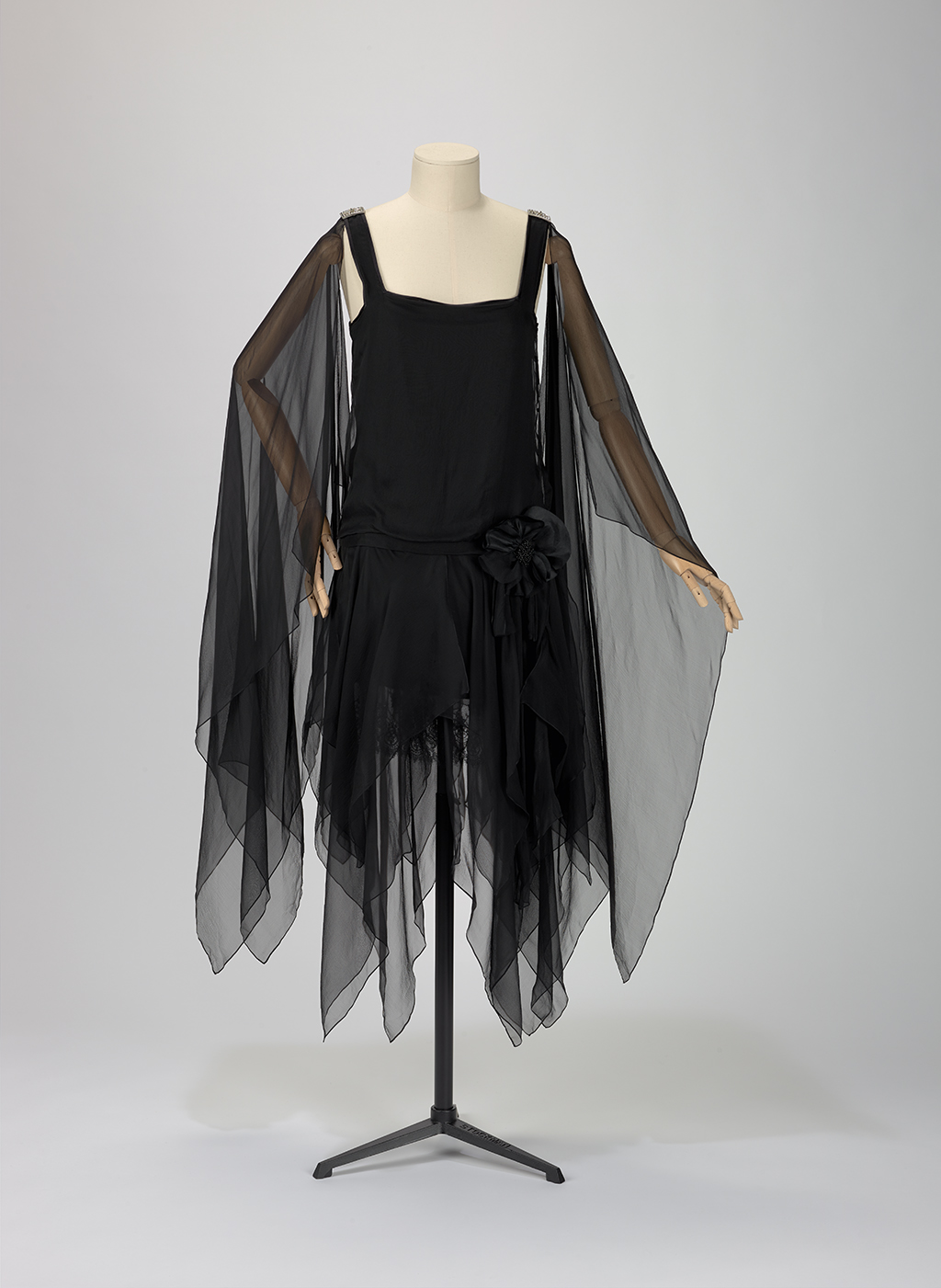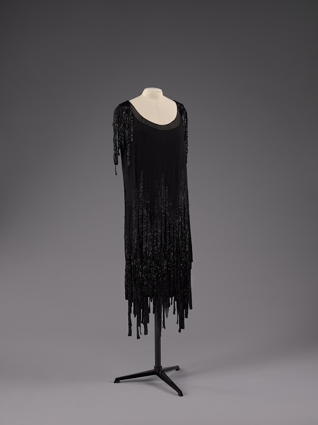 Gabrielle “Coco” Chanel (French, 1883-1971), Dress Ensemble, about 1926. Silk chiffon embroidered with bugle beads. Denver Art Museum: Funds from the Textile Arts and Fashion Circle, 2024.142A-B.