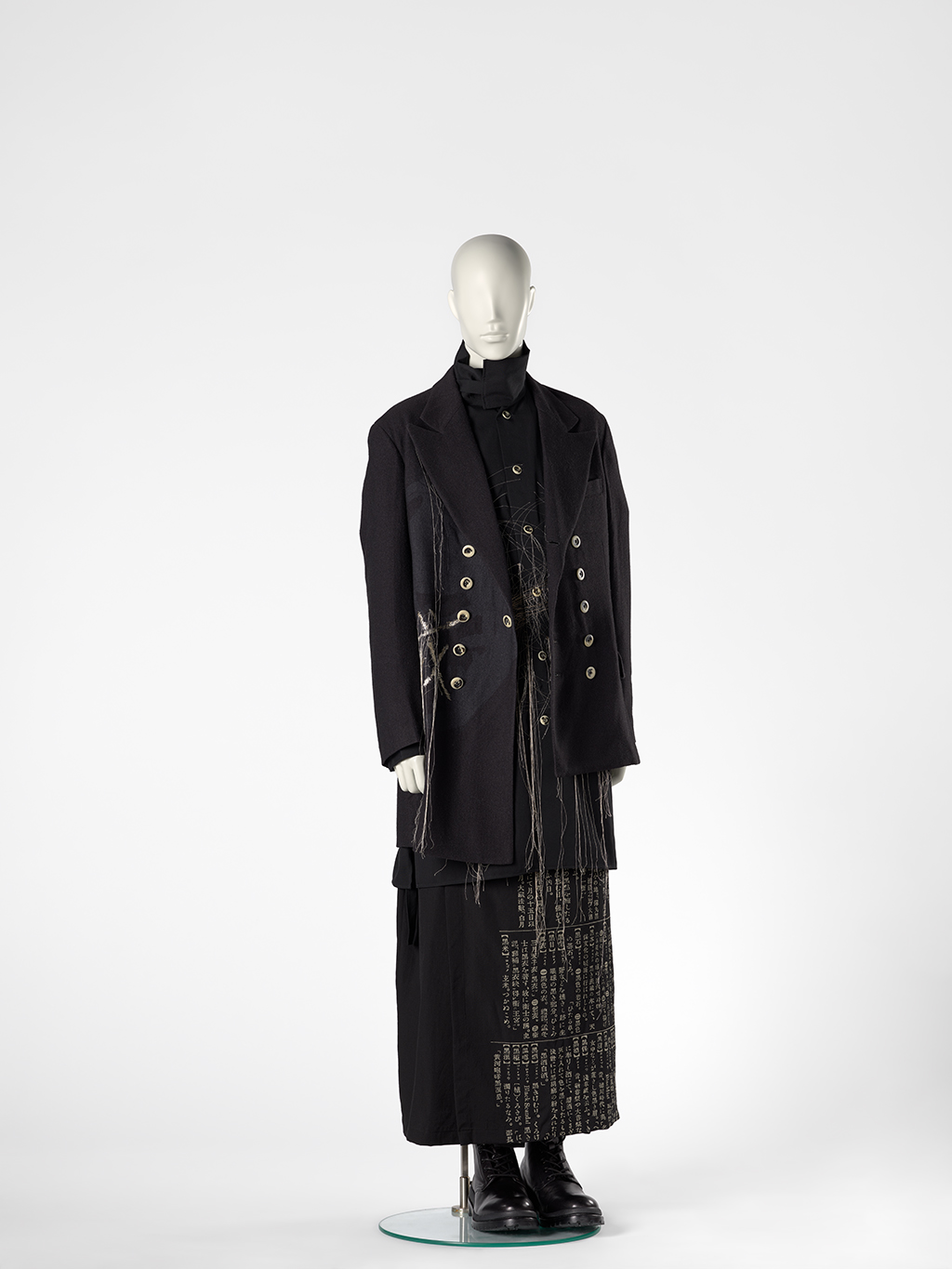 Yohji Yamamoto (Japanese, b. 1943), Jacket, Fall/Winter 2017. Wool with cupro (rayon) lining and rayon-and-cotton embroidery yarn and screenprint. Denver Art Museum: Gift of Ricardo Zaragoza, 2025.195.