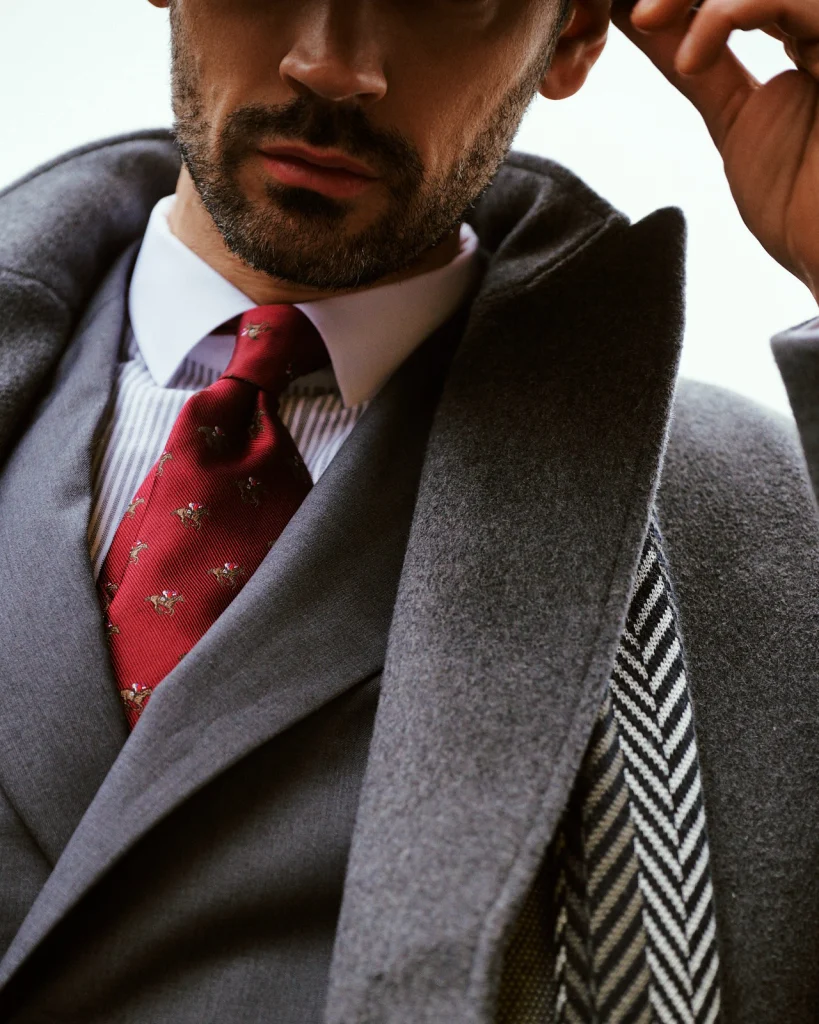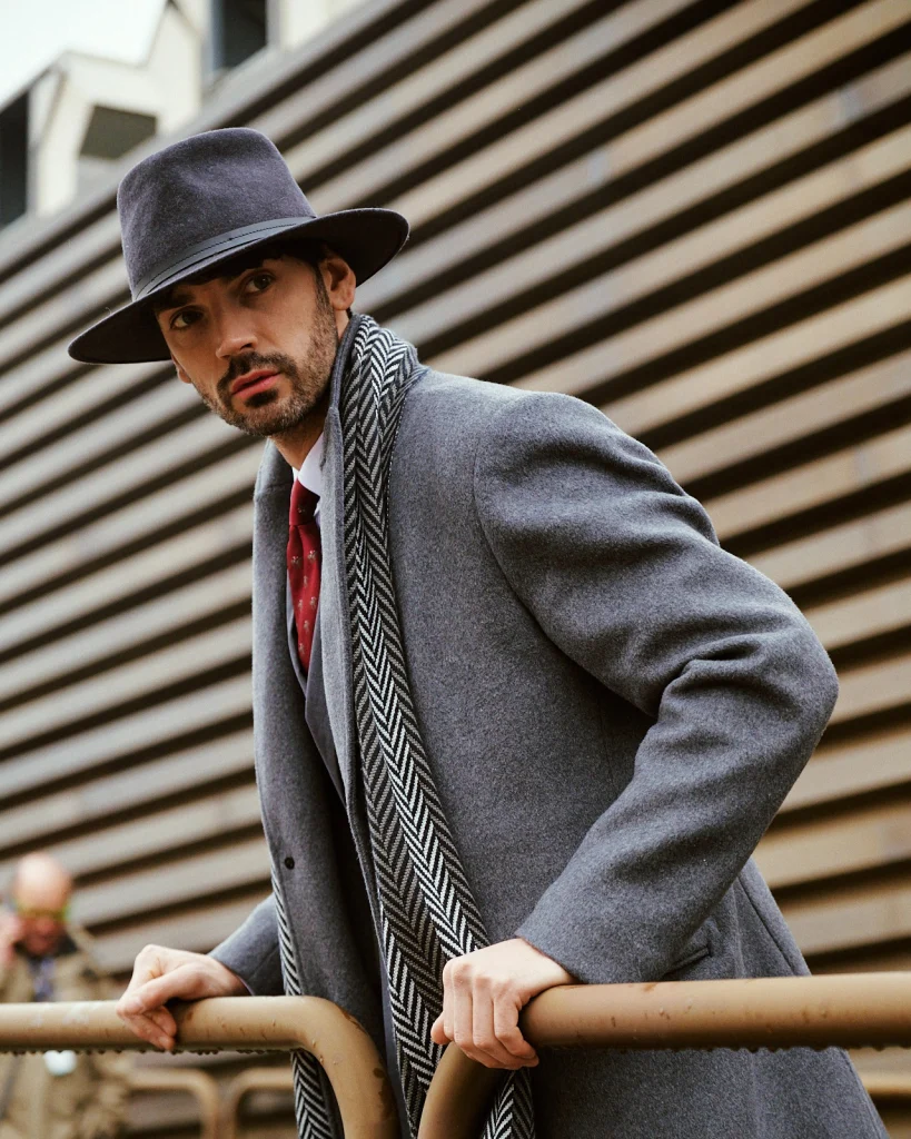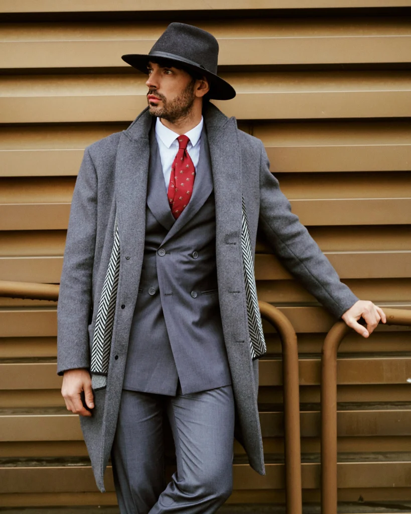 An elegant and sophisticated monochromatic combination. The grey wool coat adds structure and presence, while the three-piece grey suit reinforces the silhouette with a polished and ceremonial finish. A refined, coherent look with great visual impact. (Image credits: Claudio Bergamini @c.laudio Styled by Hockerty, Photography by Alessandro Michelazzi @alessandromichelazzi)