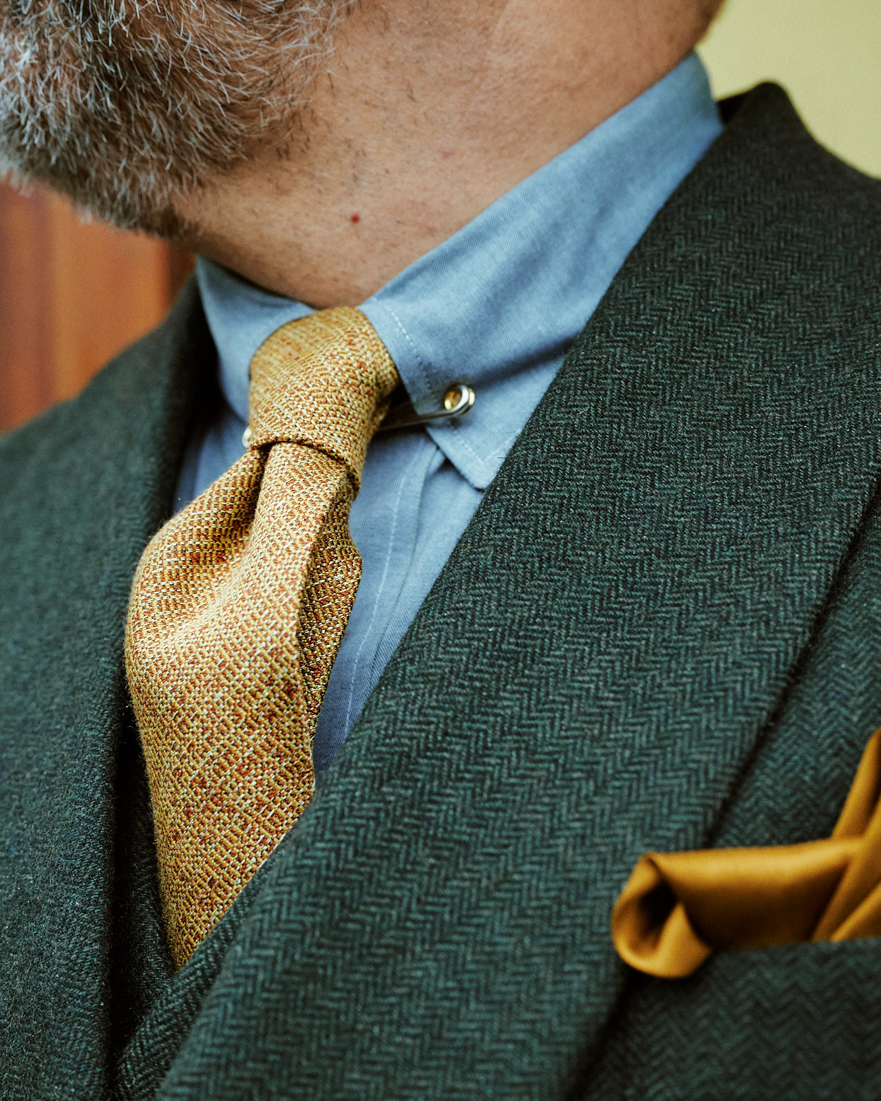 A sophisticated combination with distinctive character. The forest green double-breasted suit adds presence and visual depth, while the light blue shirt introduces freshness and balanced contrast. An elegant look, confident and with its own personality. (Image credits Brian Klimek @suittielinksbracesman Styled by Hockerty, Photos courtesy of Hockerty @hockerty_official)