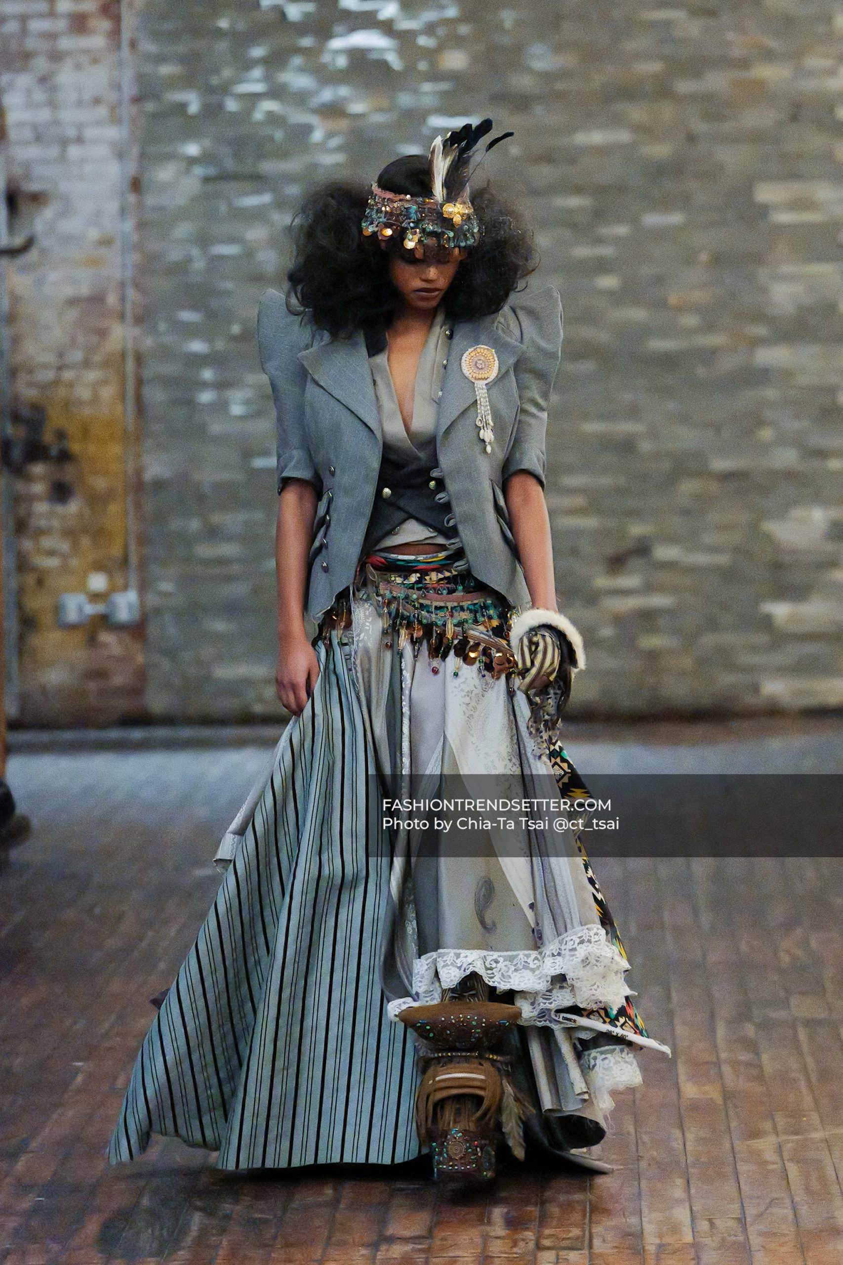 The collection unfolds with a distinctly theatrical presence. These are not quiet garments. They carry the weight of costume, not in the sense of disguise, but in their intensity. Each look feels inhabited, as if it belongs to a character rather than a model simply passing through. There’s a sense of narrative without anything being spelled out.