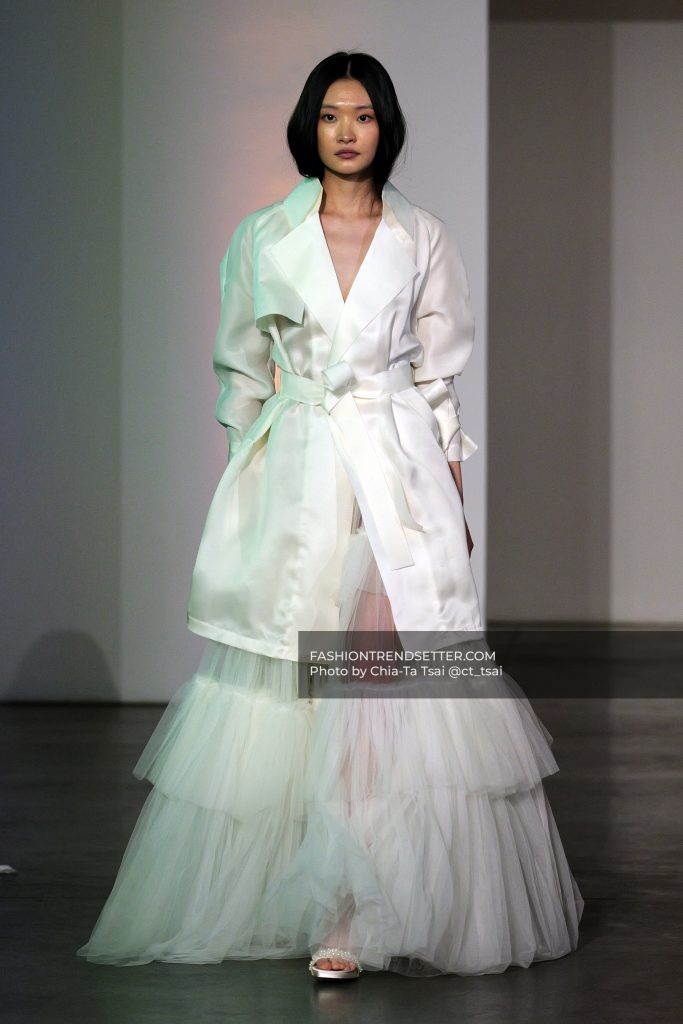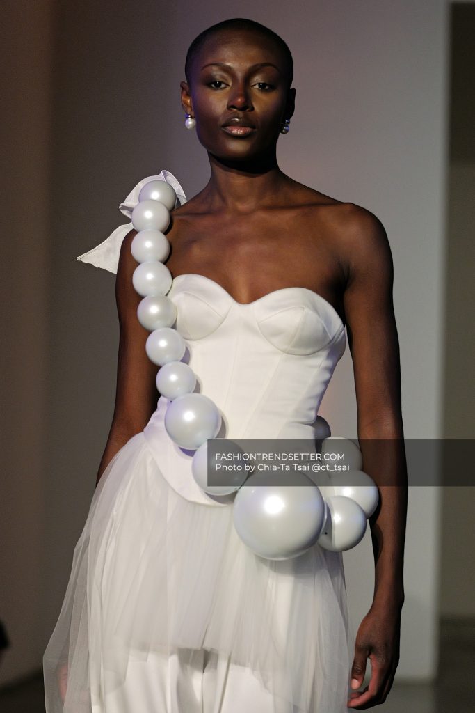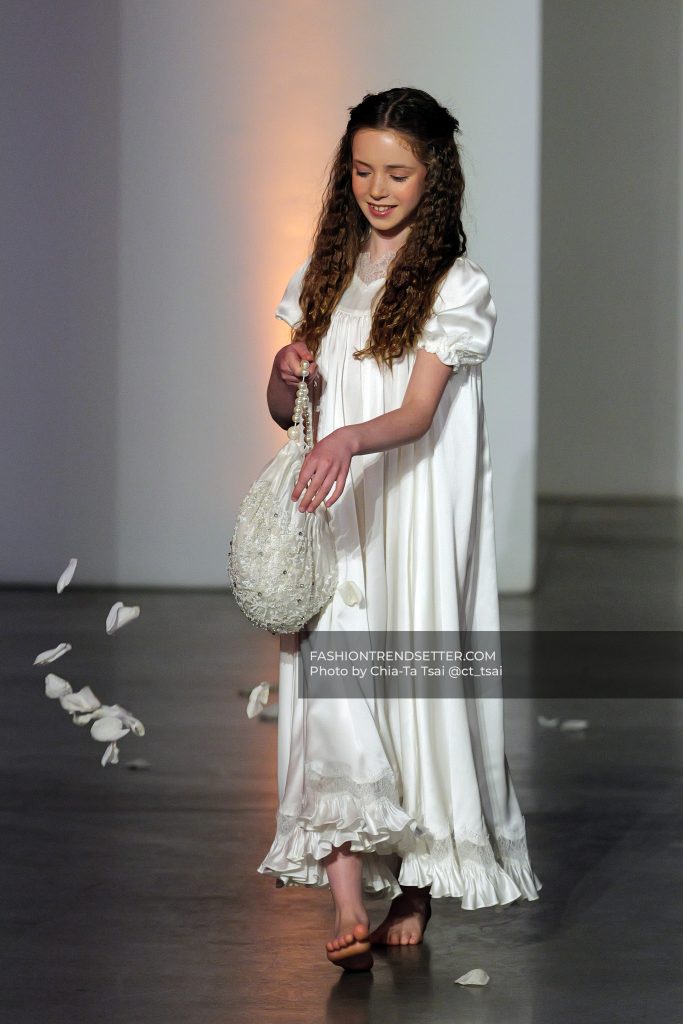The opening look set the tone with almost theatrical precision: a pregnant model walking the runway, followed by a young girl scattering petals. It reframed the entire idea of bridal identity. Before the ceremony, before the dress, there is a woman. And before that, a process of becoming. UNVEILED leans into that progression, threading themes of motherhood, vulnerability, and quiet strength throughout the collection.
