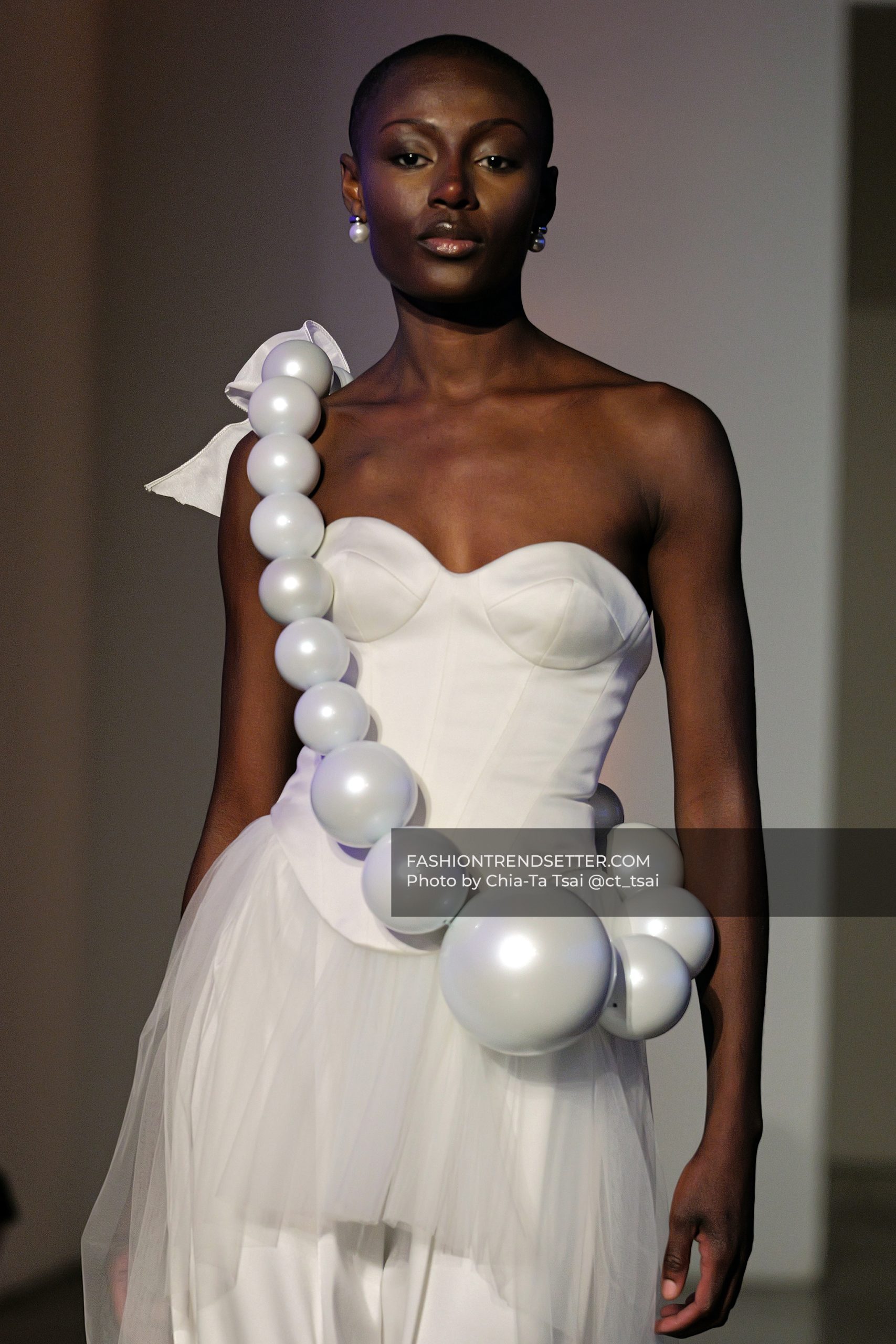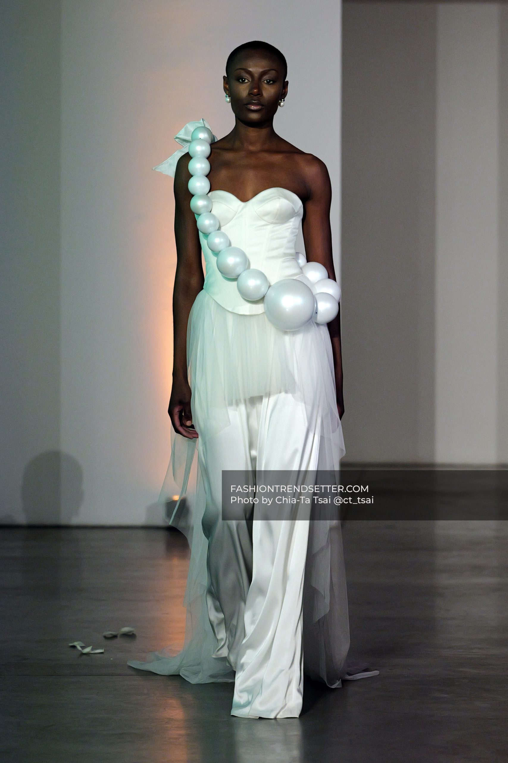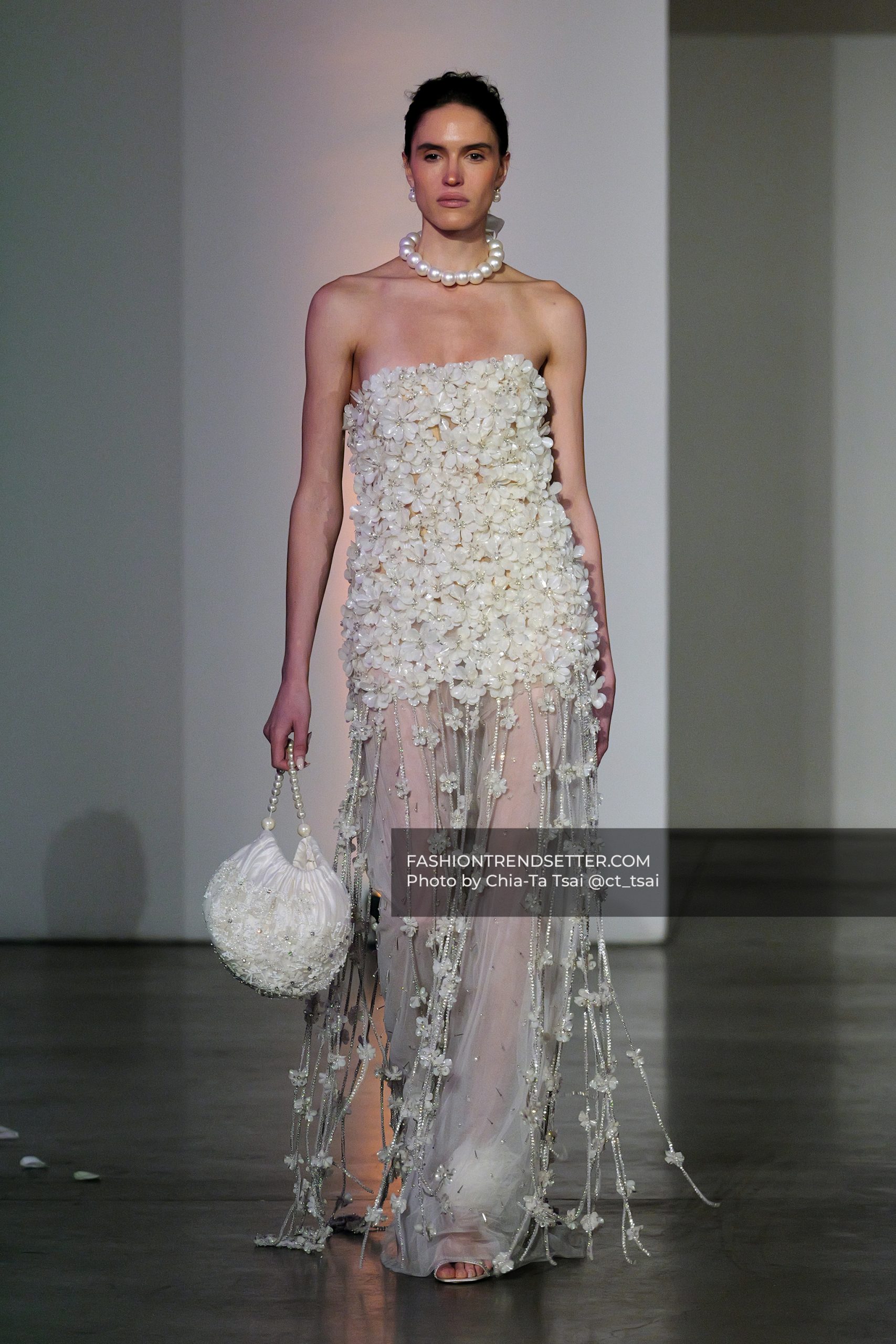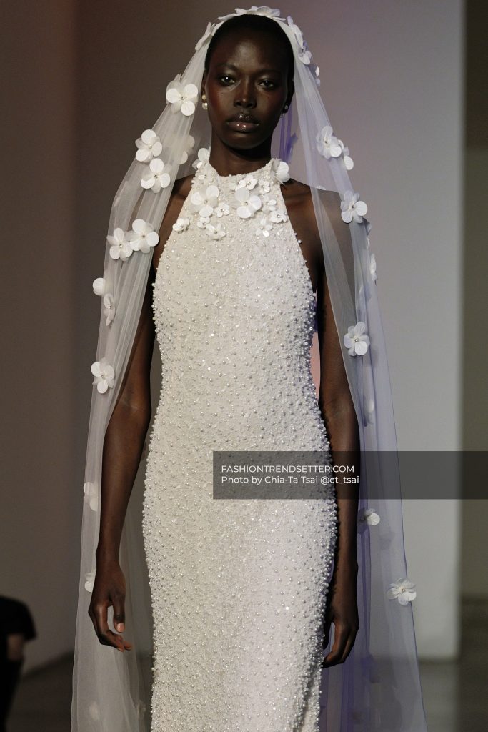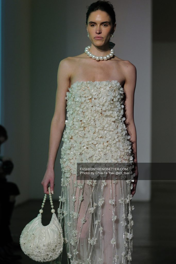 3D florals, delicate lacework, and pearls tracing the body highlight a level of detail that is both intentional and refined. It’s a kind of craftsmanship that doesn’t need to be loud to leave a lasting impression.